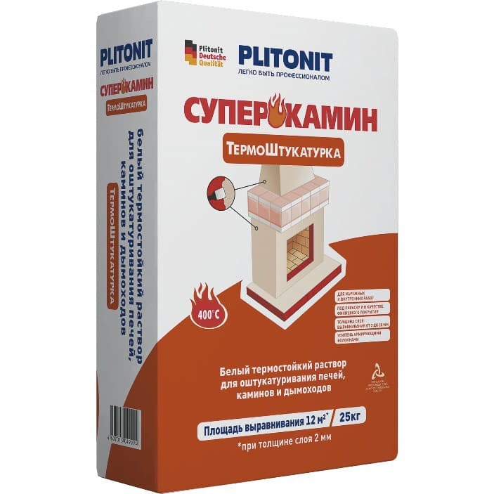 Раствор Plitonit Суперкамин Термоштукатурка белый для отделки печей и каминов 25 кг