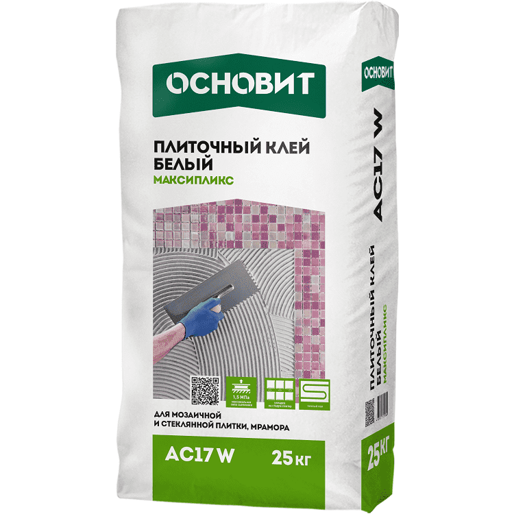 Максипликс AC17W [С2TE] клей профессиональный белый для мрамора, стеклянной и мозаичной плитки Основит