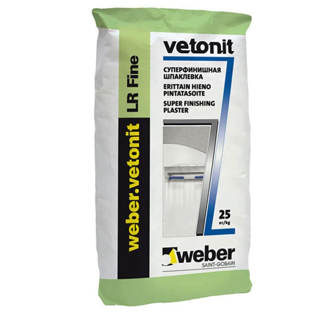 Шпаклевка известняк полимерный клей Weber-Vetonit LR Fine (суперфинишная) белый 25кг